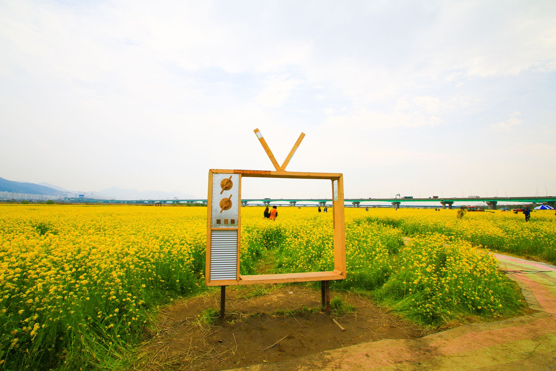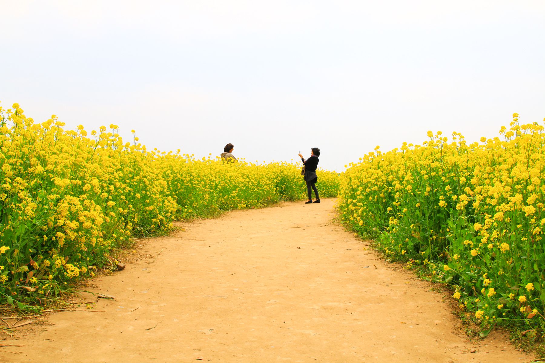 사방의 어느 곳을 둘러보아도 봄을 상징하는 노란색으로 아름답게 펼쳐져 있는 유채꽃 단지!