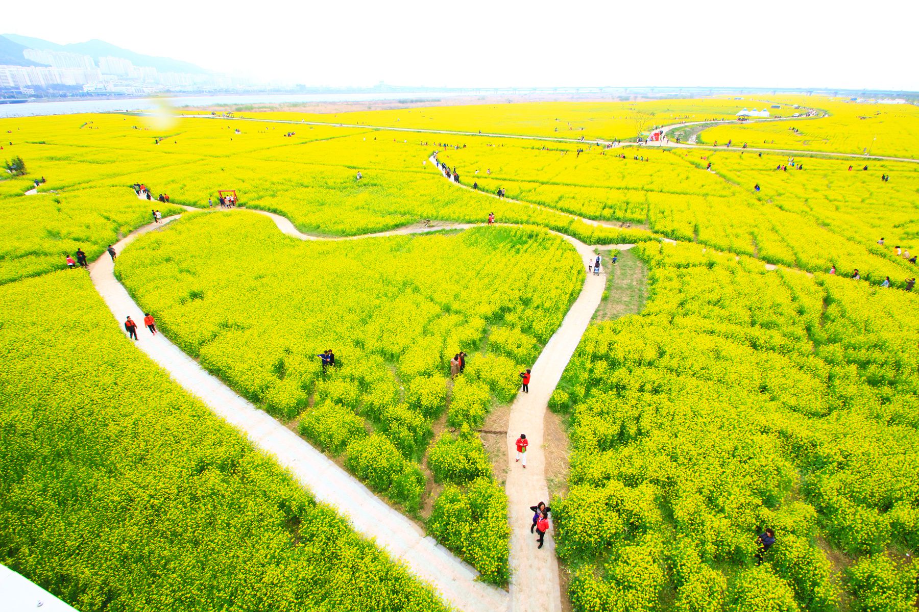 어마어마한 꽃단지에 예쁜 하트 모양의 꽃길은 대저 유채꽃축제의 추억을 더욱더 진하게 남겨줄 만한
