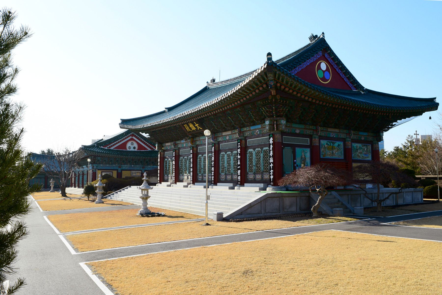 사찰 중앙에는 대웅전이 자리잡고 있습니다.