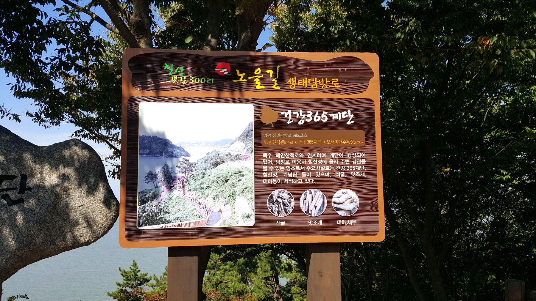 도로를 달리며 칠산도를 감상할수 있고, 건강 365계단, 노을 전시관, 해수온천랜드를