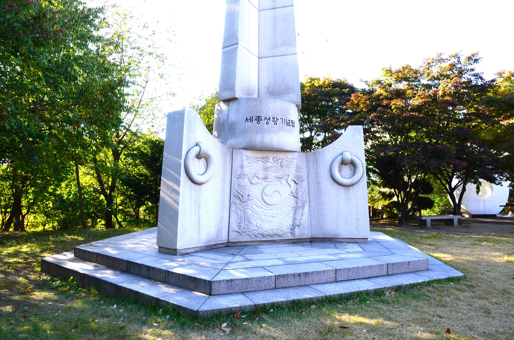 세종 성왕의 업적을 기념하기 위한 기념탑이 우뚝 솟아 그 자리를 빛내고 있습니다.