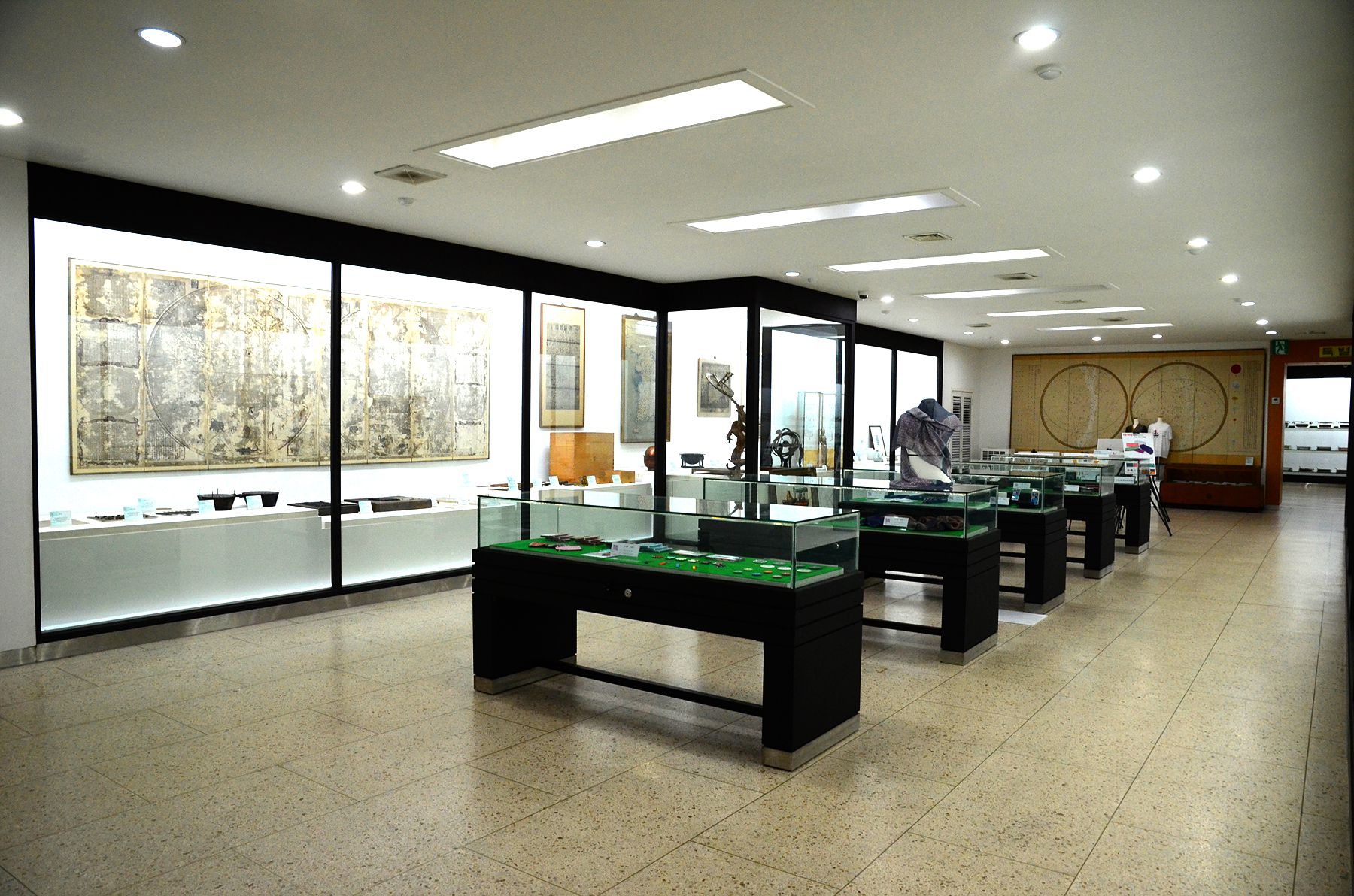 세종대왕기념관 내부 전시실은 한글실, 과학실, 국악실, 일대기실, 옥외전시실 등으로 나누어져