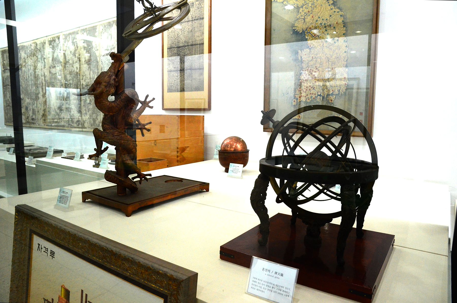그 옆으로는 세종 때 발명한 해시계, 측우기, 물시계 등이 전시되어 있으며